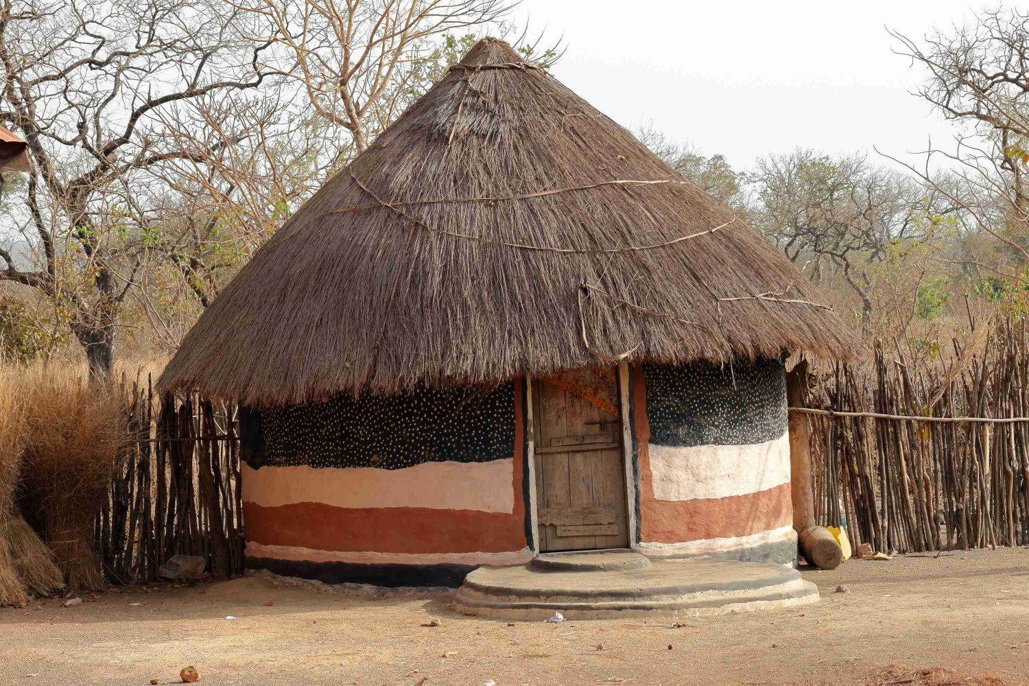 Na pragu meje se svet upočasni. Rdeča prst, senca mangovcev, okrogle hiške s slamnato streho – vas kot iz časovne kapsule. Zrak diši po suhem listju in sladkem soku zrelih plodov. V senci dreves se življenje zlije v eno dvorišče.