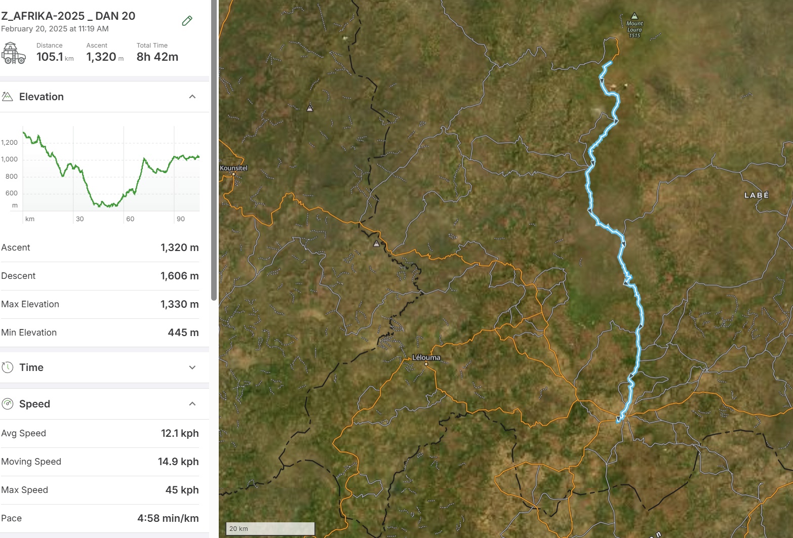 Pot do Labéja bi po zemljevidu morala biti »lahkotna nedeljska vožnja«, saj je bila označena z debelo rumeno črto. V resnici je bila daleč od preproste, a vseeno precej manj naporna od včerajšnje poti iz Malija.