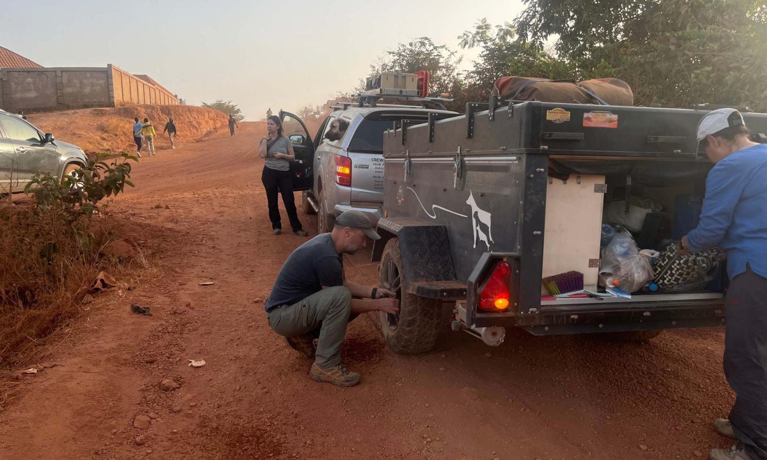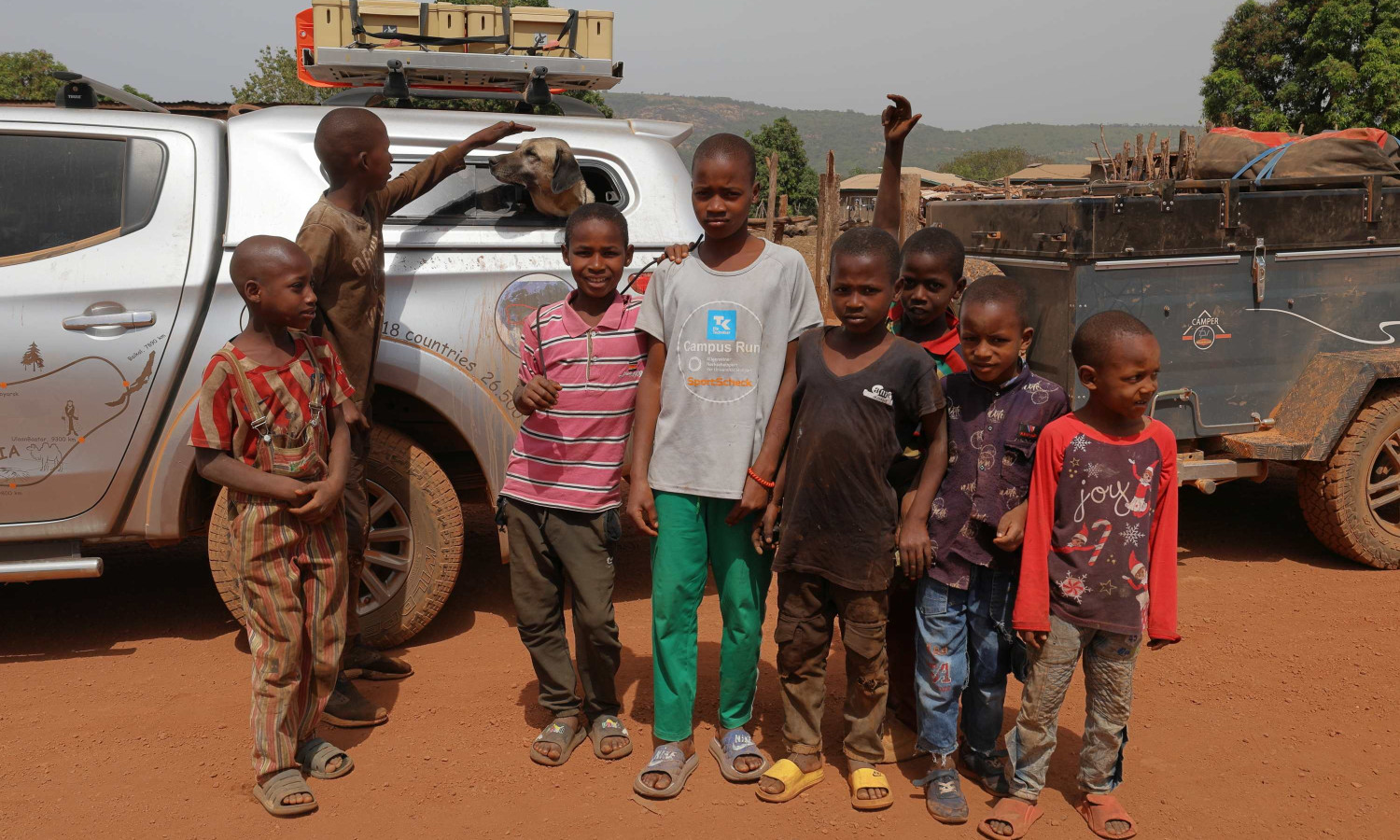 Čeprav smo prenočili v nasadu med drevesi, odmaknjeni od ceste in brez kakršne koli vasi v bližini, so nas zjutraj začeli obiskovati otroci, mladostniki in odrasli. Sprva so nas opazovali z začudenjem, a hitro so se razjasnili obrazi in zasvetili nasmehi, s katerimi so nam pokazali, da smo dobrodošli. Mnogi so želeli fotografijo z nami, vsi pa so na svoj način dali vedeti, da je Gvineja dežela nasmejanih in neskončno prijaznih ljudi – kar se je kasneje še velikokrat potrdilo. Po takšnem jutru in tako lepem sprejemu smo bili še bolj opogumljeni in polni energije za novo etapo poti proti Labéju.